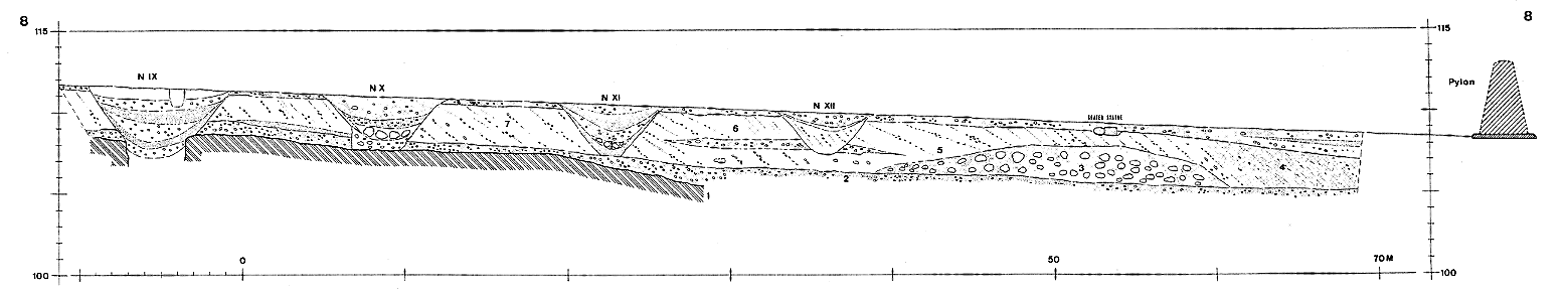 Ein Schnitt durch die nördlichen Baumlöcher N IX - N XII. Deutlich zu sehen, der unfertige Bearbeitungszustand.